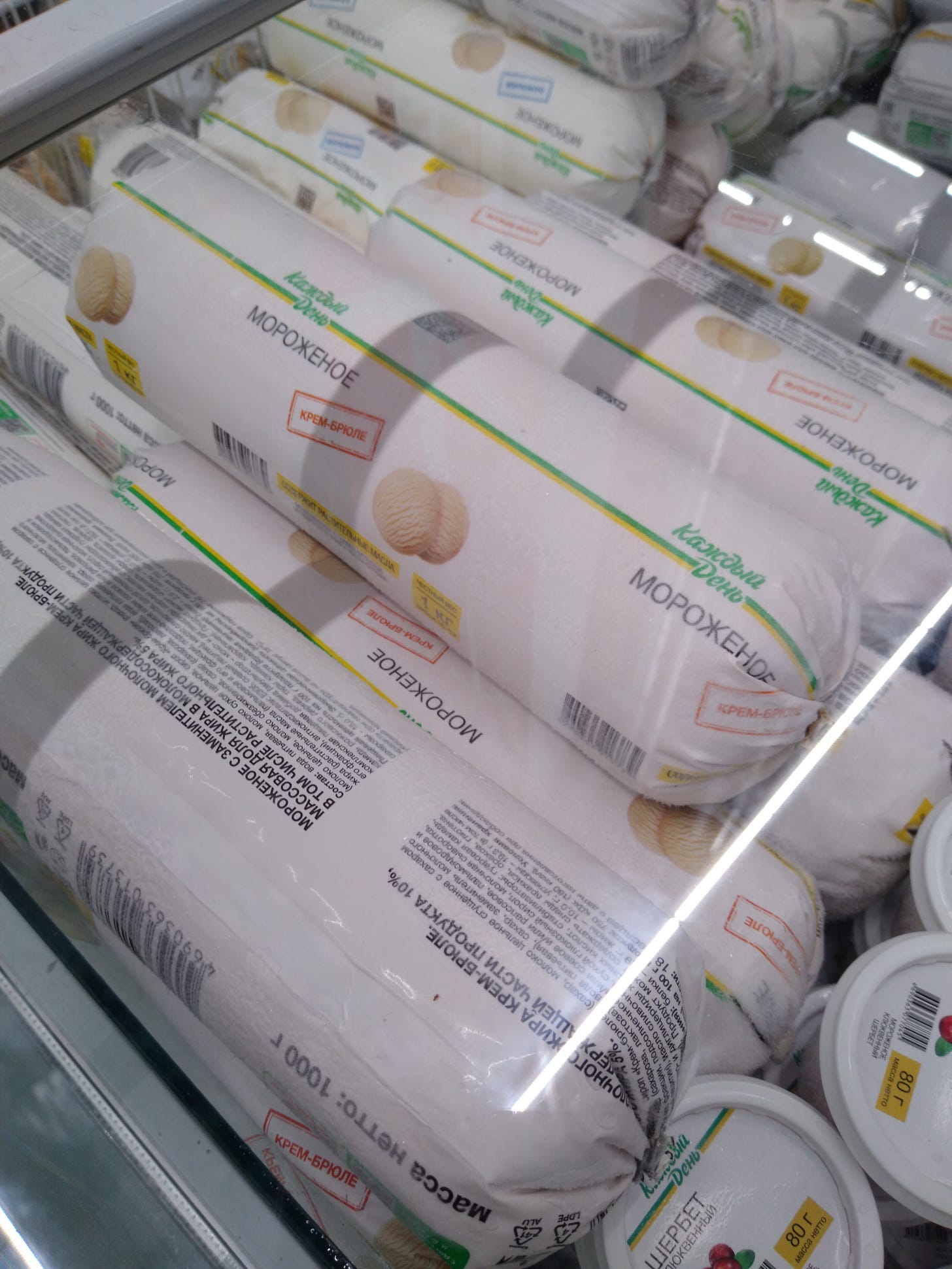 And below is proof that ice cream doesn’t have to be sold in a carton. Yes, that looks like ice cream extruded into a plastic sleeve.