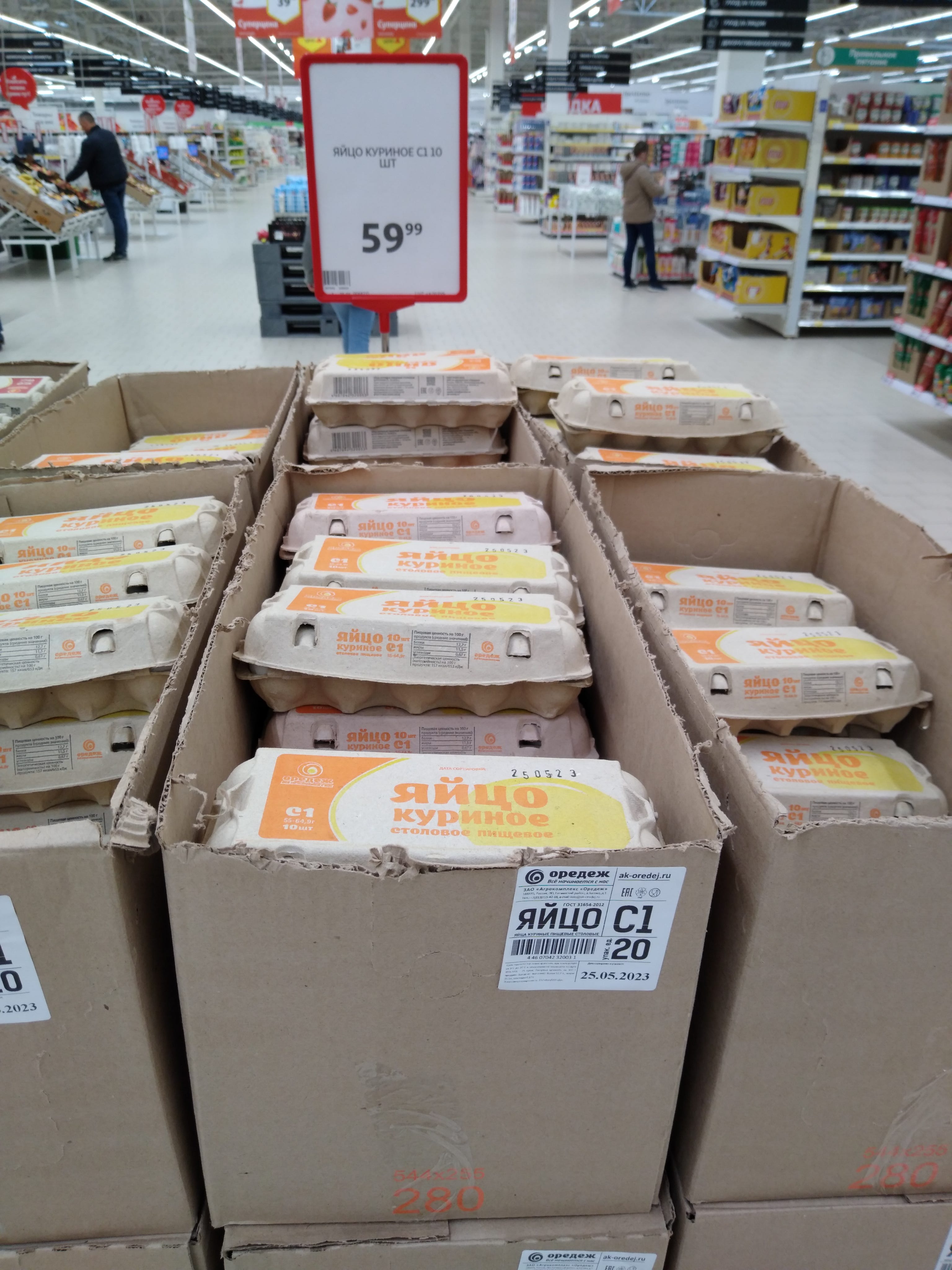 Yeah, they often sell them here in packages of 10 rather than a dozen. Contemplate that: 10 eggs for 59 rubles winds up being 75 cents at the conversion rate at which we exchanged our dollars for rubles. We got some eggs on a sale the other day that my wife discovered at less than half that price: 30 cents for 10 eggs!